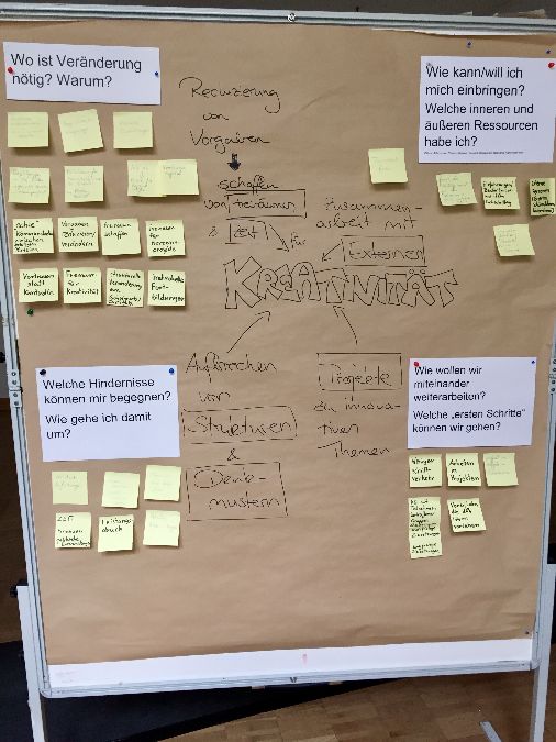 Mit diesen und weiteren Fragen beschäftigten sich am 17.05.2019 im Freizeitheim Vahrenwald rund 40 Mitarbeiterinnen und Mitarbeiter des Kultusministeriums. Inspiriert und motiviert durch einen Impulsvortrag, den die Bildungsinnovatorin Margret Rasfeld gemeinsam mit drei Schülerinnen und Schülern hielt, erarbeiteten sie in kleinen Gruppen zahlreiche Ideen und Visionen zur Bildung der Zukunft im MK und darüber hinaus.