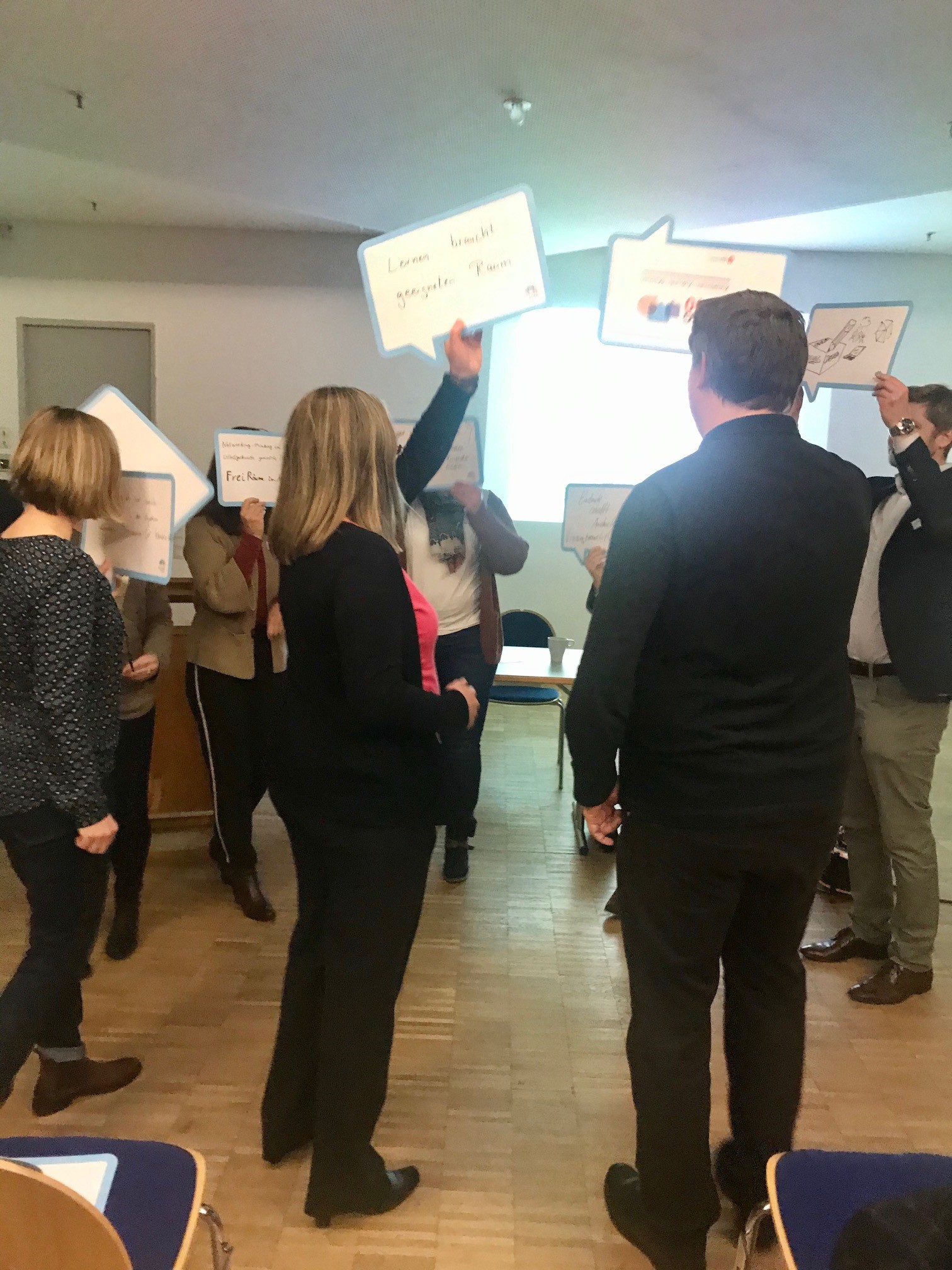 Voller neuer Ideen und Impulse tauschten sich die Teilnehmenden anschließend in Kleingruppen über die zentralen Thesen des Vortrags aus und stellten den für sie wesentlichen Aspekt in einem Standbild dar.